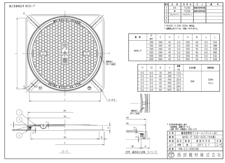 簡易密閉形マンホール鉄ふた(パッキン式) MHB-P 300~600 (SHASE-S209-2009)