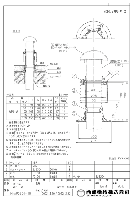防水継手 (後付型) WPJ-W 65~150