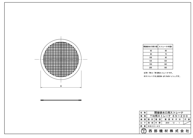 間接排水口用ステンレス網 65~200